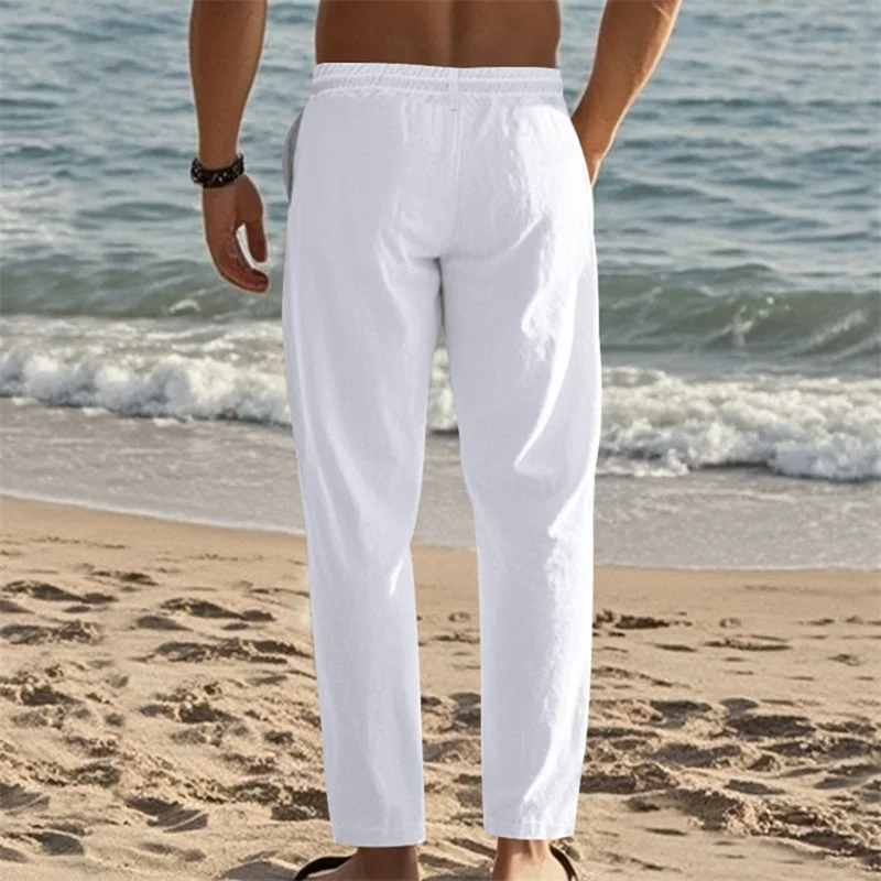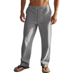 Men Lightweight Drawstring Straight Leg Linen Pants with Pockets